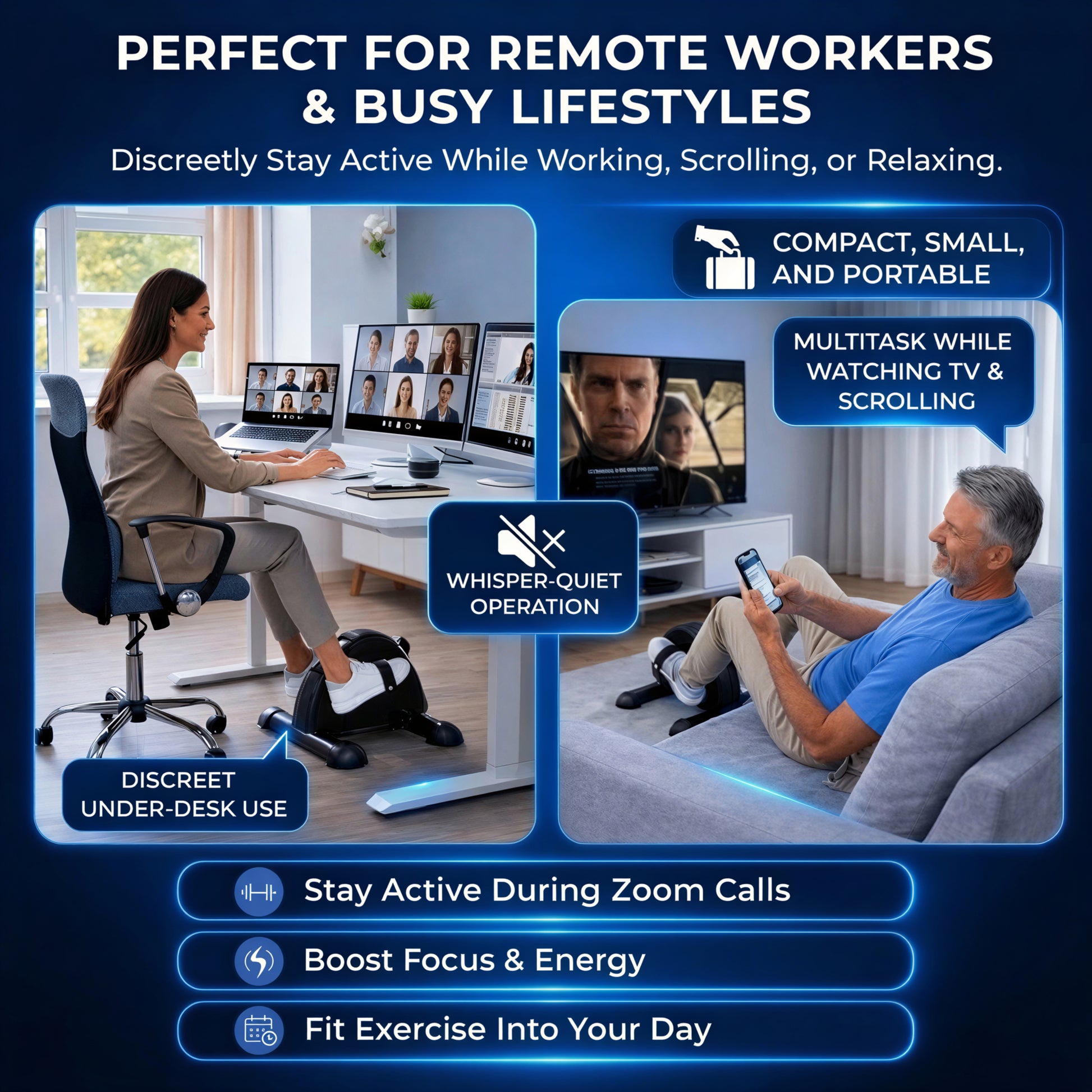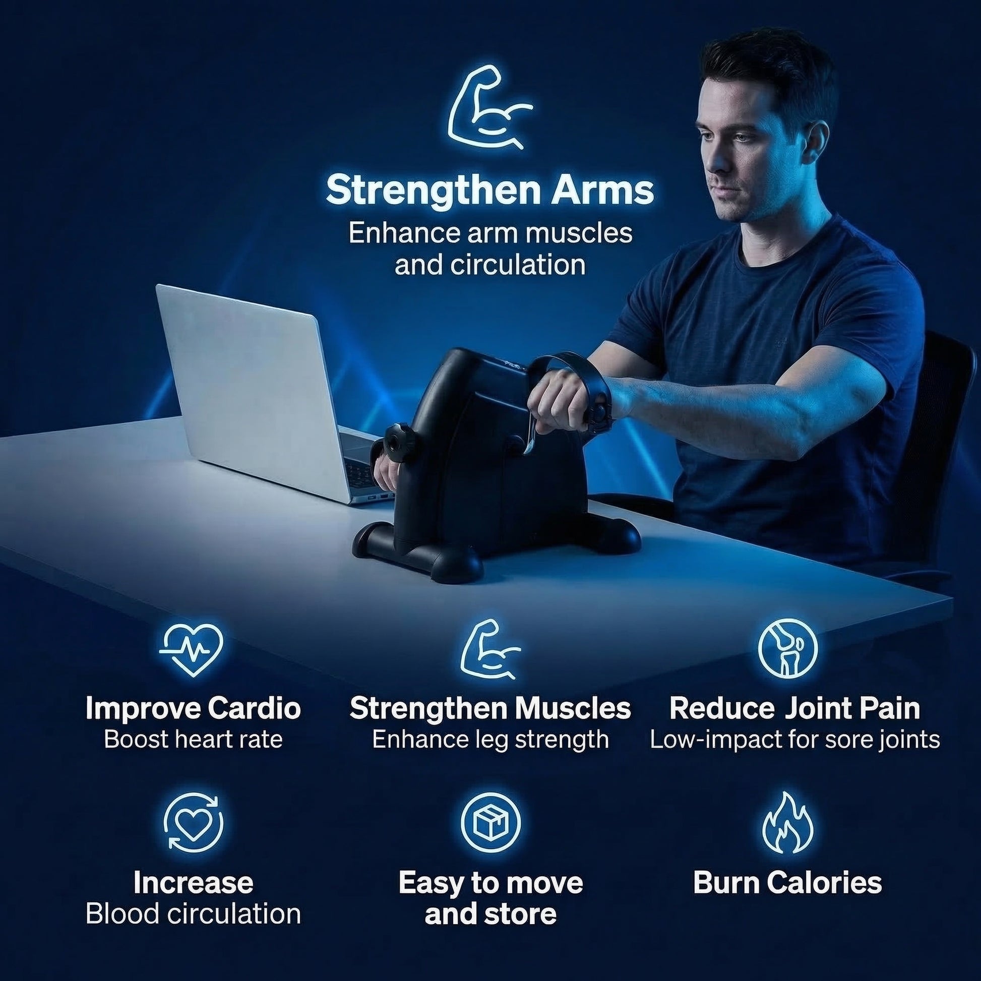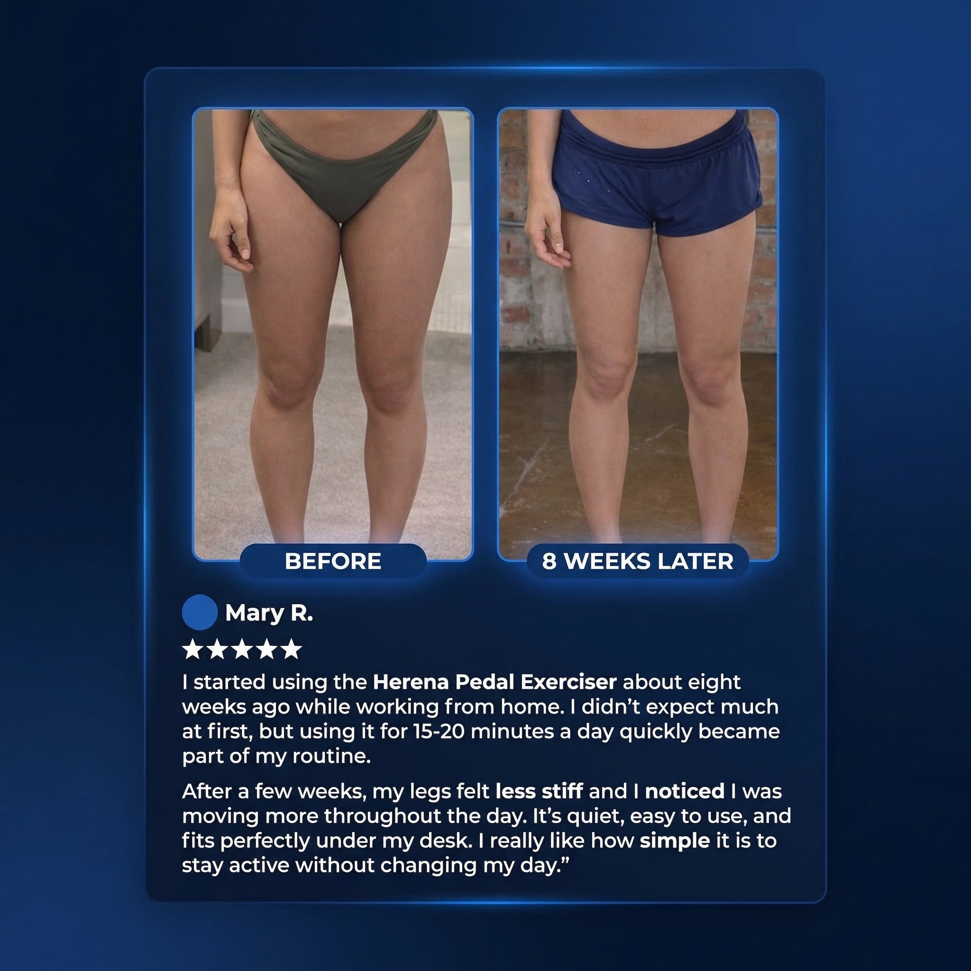 Thousands use the Herena™ Mini Exercise Bike every day to stay active at their desk, burn extra calories while relaxing, and support gentle knee movement and rehab.
